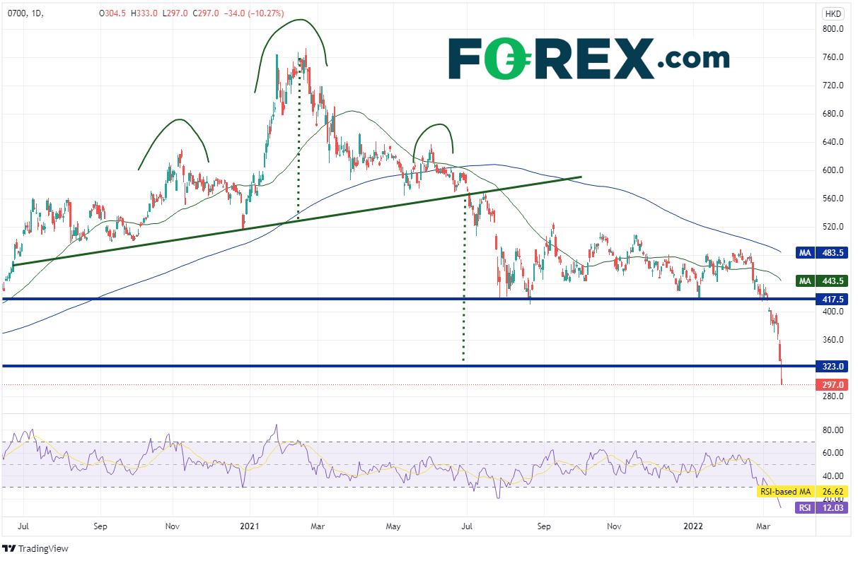 负面消息作用下腾讯股价到达头肩顶目标价位- 嘉盛官网