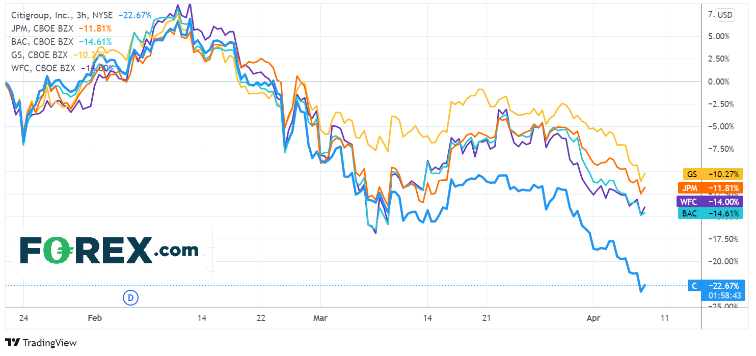 加息预期未改大型银行股跑输大盘的局面,投资者对经济前景、收益率曲线倒挂和俄乌战争负面影响的担心日渐升温。一季度财报季期间,受伤最严重的银行之一可能是花旗集团。