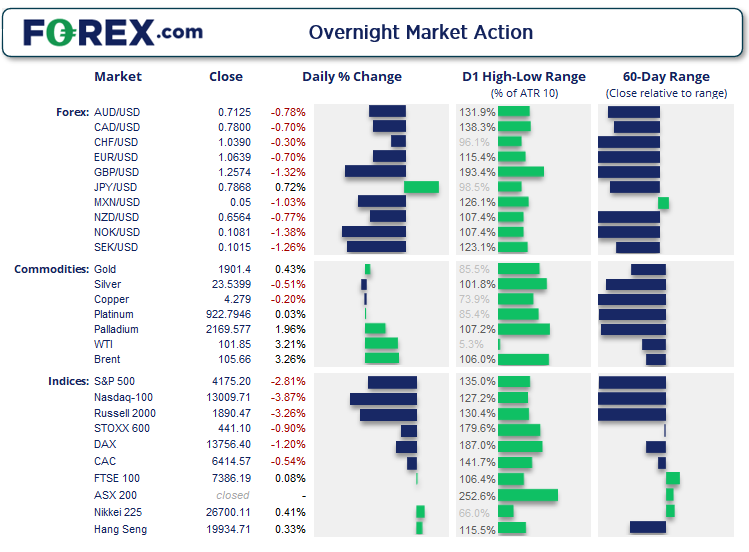 隔夜美元兑日元以外的所有货币继续高高在上,守住最强主要货币的王冠。与此同时,财报弱于预期扩大了美股的下行,避险资金也流入了日元。英镑/美元是最弱主要货币且下跌1.3%左右。