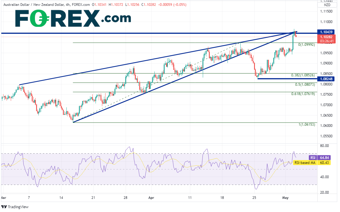 澳洲联储新紧缩周期的第一次加息,幅度就达到了25个基点,超过市场预期的15个基点。澳大利亚基准利率目前自0.1%的历史低点上升至0.35%。澳洲联储也将停止对到期债券收益的再投资,即其将开始量化紧缩。此外,澳洲联储将2022年通胀预测值从5.1%上调至6%。澳洲联储突如其来的强硬转变,带动澳元/纽元站上一些关键技术价位。