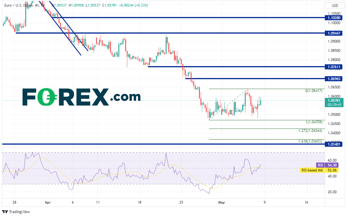 美国4月非农就业新增42.8万人,符合3月修正后的数值,也超过新增39.1万人的预期均值。就业报告还显示,失业率保持在3.6%不变,高于跌至3.5%的预期值;平均每小时收入上涨0.3%,低于3月修正值0.5%的预估值0.4%。综上,表面数字可靠且超过预期。美联储在上周早些时候的FOMC会议上表示,劳动力市场极端紧张,美联储必须降低通胀以维持劳动力市场的强劲。周五的非农就业报告帮助验证了美联储在就业方面的观点。