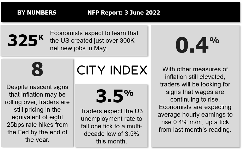 这是美联储6月中旬会议召开前的最后一份就业报告,但不大可能马上影响货币政策。鲍威尔及其同事始终指出,美联储接下来的两次会议每次都将加息50个基点。而交易者也听进去了,目前计入两周后加息50个基点的几率高达99%。