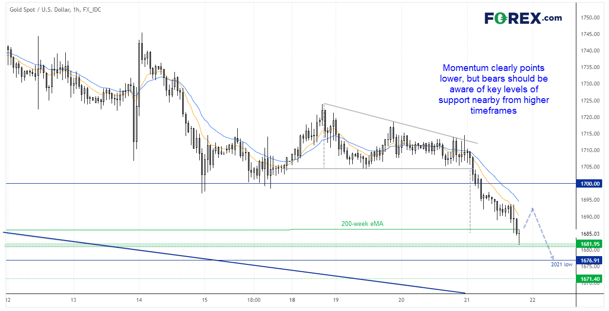 但我猜在2021年低点下方筑有大型止损单,要系好安全带,小心被触发。从当前波动性水平来看,如果攻克,空头可以轻而易举到达1600。