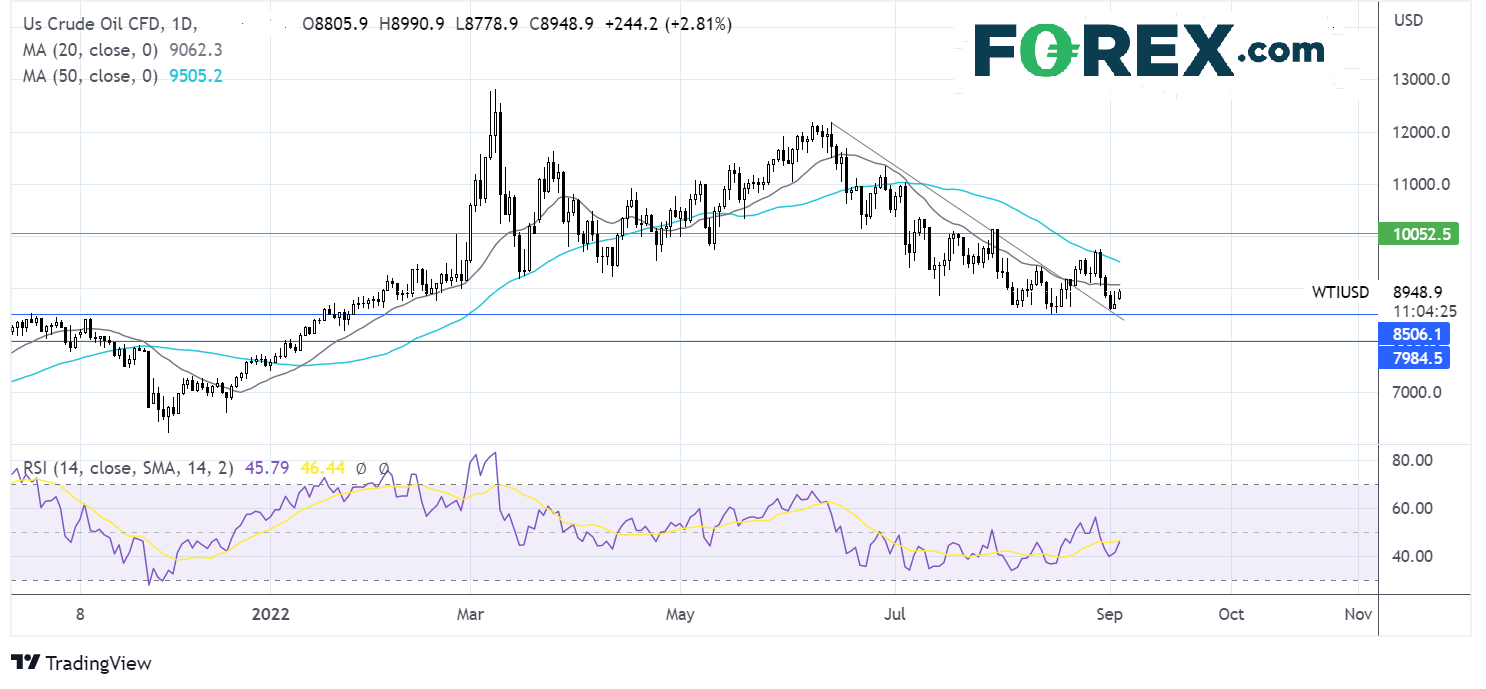 当俄罗斯入侵乌克兰时,油价飚升至130高位。随着西方国家制裁俄罗斯,油价保持高涨势头。最近一段时间油价业已下跌,过去三个月从6月高点123下跌至90下方的当前水平。七国集团最近同意限制俄罗斯进口石油价格,或令油价进一步承压,而OPEC+出人意料地减产,则可能给予油价良好的支撑。