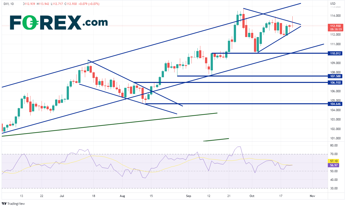 美元指数(DXY)和其他相对货币以及国债收益率走势快速反转。美元指数自高值113.94上升101点子,随后日内回落至112.94附近。值得注意的是,美元指数指数在上述消息传出后,突破三角旗形态。如果今日保持倒锤形态,则可能是假突破,价格或会测试周三形成的低点111.91。