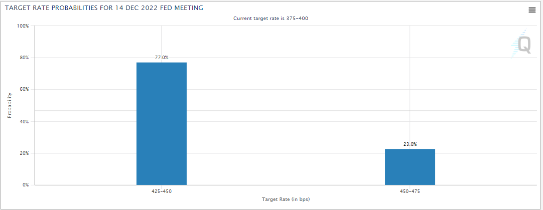 在连续四次加息75个基点后,多数交易者预期美联储本月加息幅度下调至50个基点。自3月以来,利率累计增加375个基点,是四十年来加息周期中步伐最为激进的一次。