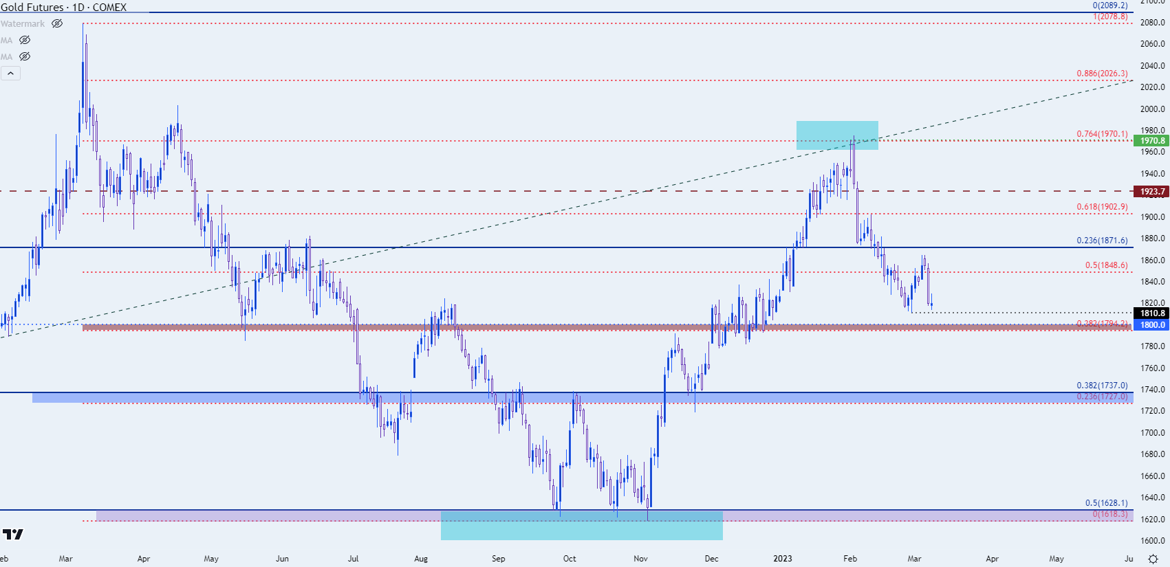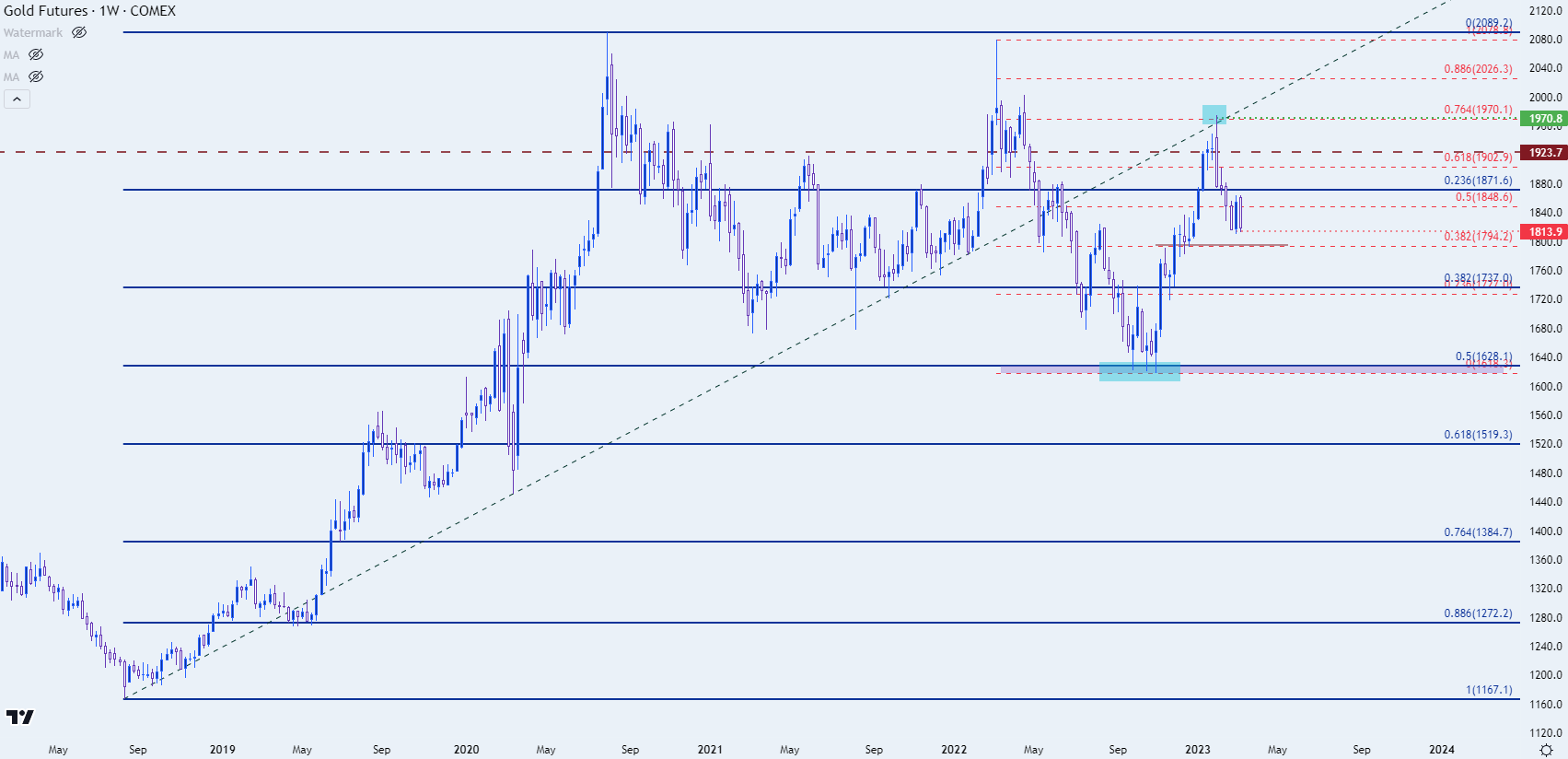 图表由James Stanley准备,Tradingview上的黄金