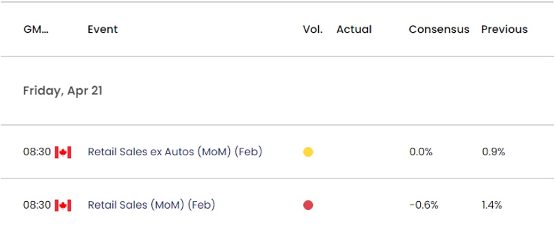 因此,加拿大零售销售报告的发布可能会使加拿大央行继续观望,预计2月份家庭支出将下降0.6%,而经济放缓的迹象可能会给加元带来阻力,因为这会促使加拿大央行在6月7日的下次会议上将政策利率维持在4.50%。