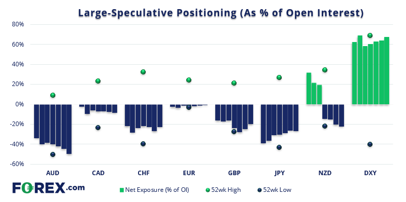 - 美元多头持仓升至2019年10月以来最高点(但经未平仓头寸调整后仅升至5周高点)